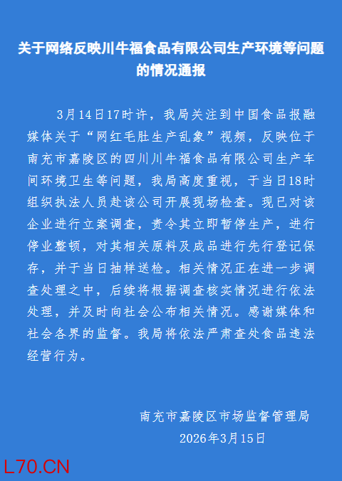 官方回应“网红毛肚生产乱象”:立案调查 涉事企业停业整顿官方回应“网红毛肚生产乱象”:立案调查 涉事企业停业整顿