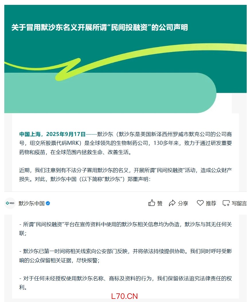 默沙东中国:未曾也不会在任何市场以任何形式开展面向公众的民间投融资类活动默沙东中国:未曾也不会在任何市场以任何形式开展面向公众的民间投融资类活动