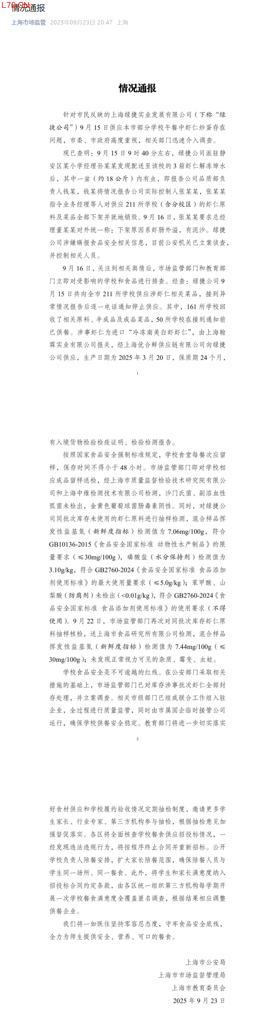 三部门通报“部分学校午餐虾仁炒蛋存在问题”调查情况三部门通报“部分学校午餐虾仁炒蛋存在问题”调查情况