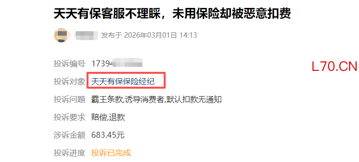 一位网友3月初爆料:“今年2月接到天天有保电话销售推介,下单0.95元低价保险产品。此后开启月度自动扣款,累计被扣费680多元。拨打天天有保官方电话,但未退费。”