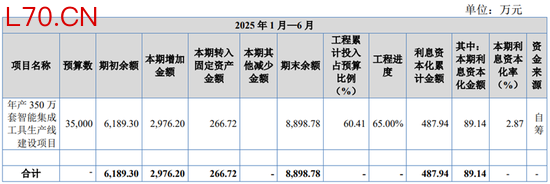 需要注意的是,在德硕科技上市前的在建工程项目中,就有“年产350万套智能集成工具生产线建设项目”,而且早从2021年就开始投建了,截至2025年上半年末,历经3年半时间,还没完工呢,而且工程进度还只有65%;要是按这个进度推算,后年也完不了工呀!