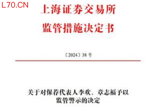 再往后,上交所2024年6月21日公布的《关于对保荐代表人李欢、章志福予以监管警示的决定》显示,李欢作为海通证券指定的武汉格蓝若智能技术股份有限公司首次公开发行股票并在科创板上市申请项目保荐代表人之一,在保荐工作中存在保荐职责履行不到位的情形,决定对其采取监管警示措施。